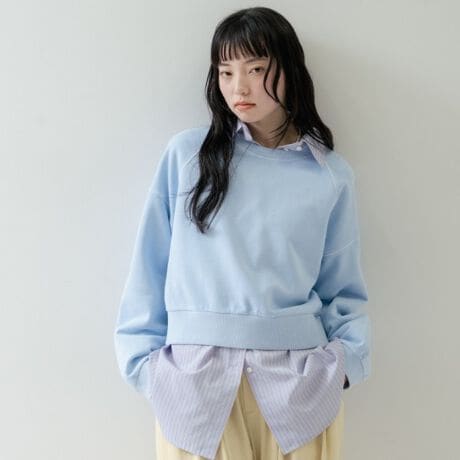 ゆるめアームと太めリブでボクシーなフォルムに、クロップドの着丈で重心アップ。