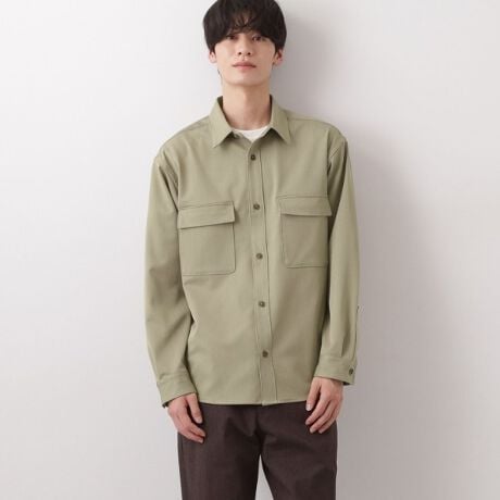上品な素材を使用し、ワークテイストのカバーオールデザインをきれいめに落とし込んだシャツアイテム。