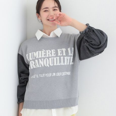 袖がデニムの異素材使いになったニットプルオーバー。