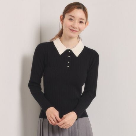 カジュアルな印象のポロ襟もニット素材で仕上げれば女性らしく柔らかな印象になります。