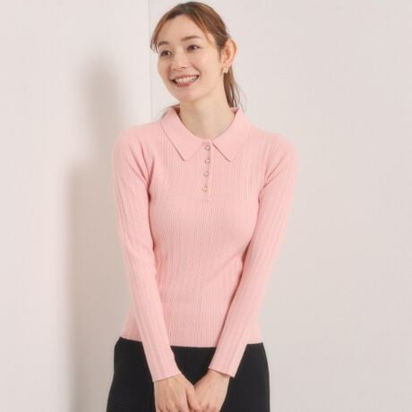 カジュアルな印象のポロ襟もニット素材で仕上げれば女性らしく柔らかな印象になります。