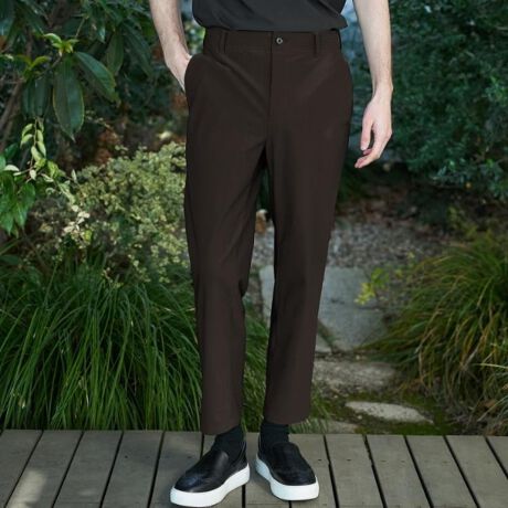 フロントはスラックスのような見た目で前開き仕様にしており、バックサイドをウエストゴムにすることで、一般的なイージーパンツより上品に着用できます。