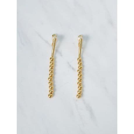 小枝のようなバー状のメタルパーツに、パールやメタルボールが連なったイヤリング。