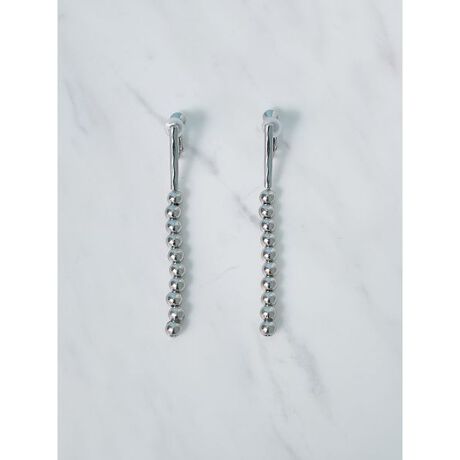 小枝のようなバー状のメタルパーツに、パールやメタルボールが連なったイヤリング。