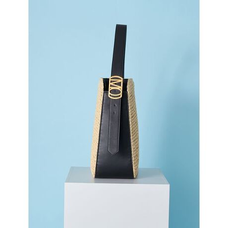 <b>【使いやすいバケット型バックが、オリジナルのバックルでよりモダンに。レザー調やラフィア使いでリュクスな印象】</b>