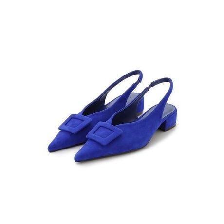 ポインテッドトゥーでバランスよく仕上げたパンプスは、レトロなムードのバックルデザインが新鮮。