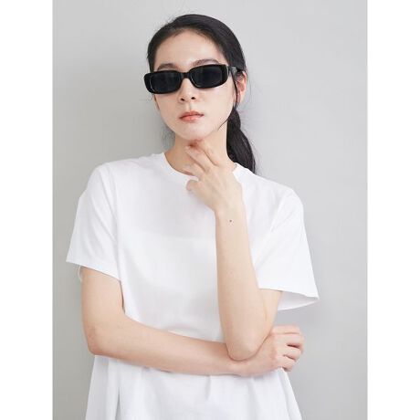 スクエア型のレンズが顔の形にも馴染みやすく、小顔効果も叶います。