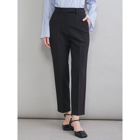 適度なハリと軽いストレッチ性の素材が、センタープレスのラインをきれいに活かし、脚のラインを拾わずにすっきり見せてくれます。また、ウォッシャブルでお家での手入れがしやすいのもポイント。