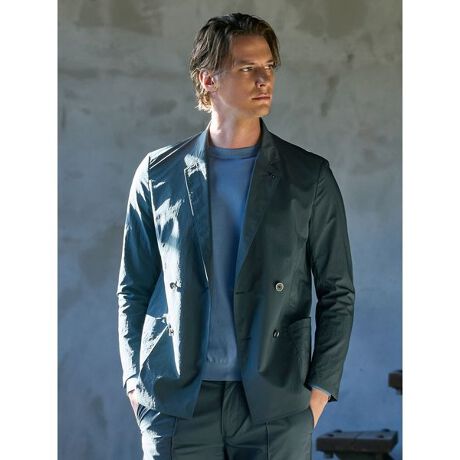 ナチュラルなシワ感が特徴のナイロン素材を使用したダブルブレストジャケット。
