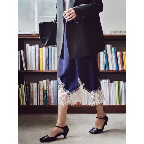 <b>【イレギュラーヘム+レースの、動きのあるミディ丈スカート。幅広い着こなしに組み込める愛されアイテム】</b>