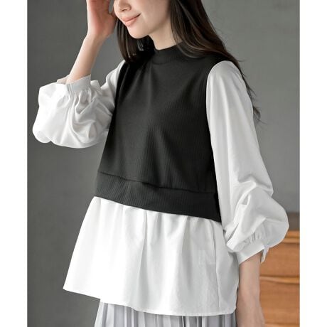 変形タックスリーブ衿付きドッキングブラウス