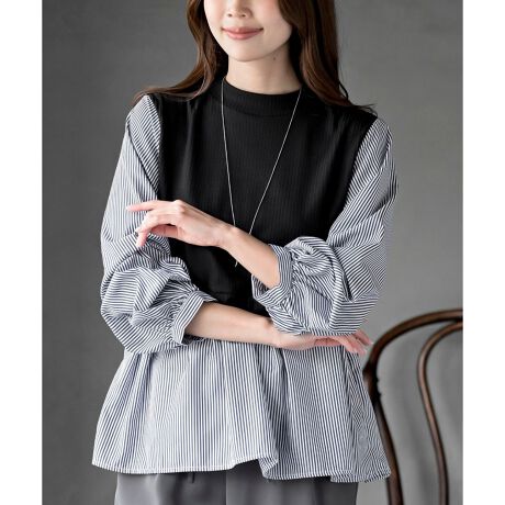 変形タックスリーブ衿付きドッキングブラウス