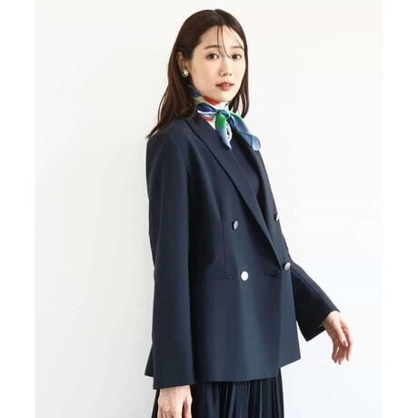 幅広いシーンで活躍してくれるダブルブレストジャケット。スカートやワンピース、パンツとどのアイテムともバランス良く決まる丈感に設定。ボクシーすぎないシルエットはきれいめにも、カジュアルな単品ジャケットしても着用できます。袖裏はストライプの裏地を使用しポイントに。