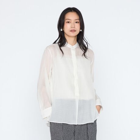 上品な素材感とたっぷりとした分量感で、ミニマルに表現したバンドカラーシャツです。