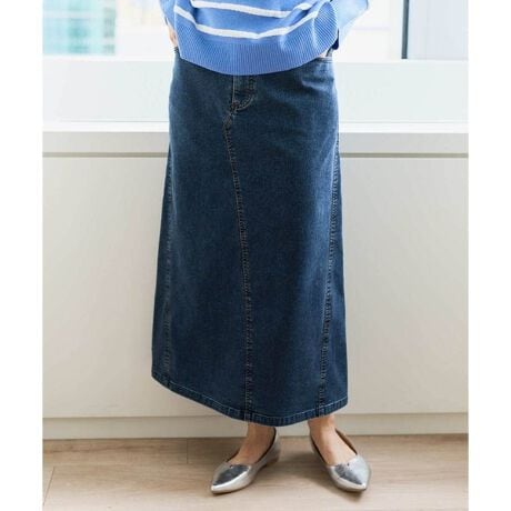 ・セミタイトのスッキリとしたシルエットのデニムスカートです。