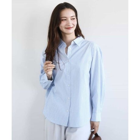 使い勝手の良いベーシックなシャツ。そのままの着用はもちろん、フロント一番下に釦ホールがあるので、前立て裏の釦に留めていただくと、タックアップ風に。両脇内側についた釦を留めていただくとカシュクール風にアレンジも可能と3wayで着用可能。カシュクールの場合は、襟を抜いての着こなしがおすすめです。