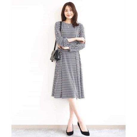 ブランド定番人気のジャージープリントワンピース。上品さのある幾何柄に落ち着いた色合いはきちんと感のある印象に。ウエストタックでフィット&フレアーのきれいなシルエットが特徴。