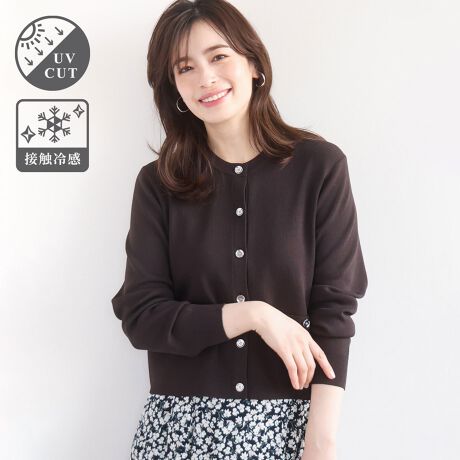 ハイゲージのきれいな目面が特徴のニット素材。型崩れしにくく伸縮性抜群の総針編地です。お仕事などにもちょうどいい見え感でさらりとした肌触りの良さがポイント。接触冷感、UVカット機能付き。