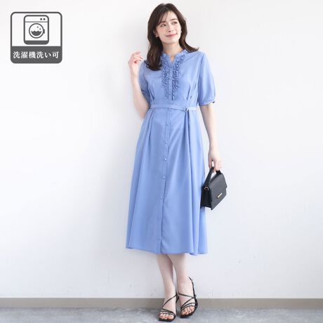マルイウェブチャネル   /   オフオン   /   ワンピースドレス   /   ワンピース   /   フロントフリルキーネックワンピース/洗濯機で洗える/WEB限定サイズあり