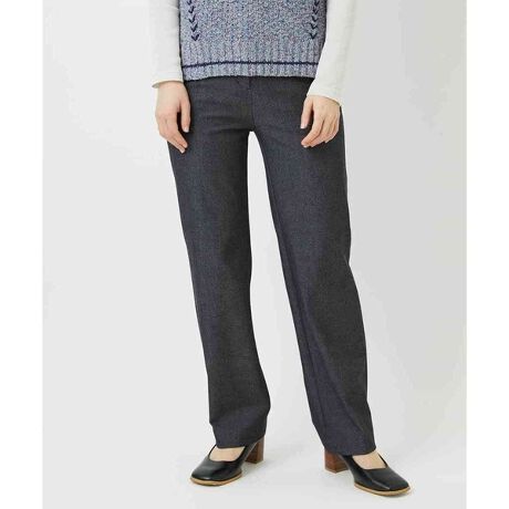 ウエストベルトはややカーブをつけて腰の丸みに沿うように、ヒップをしっかり包み込みソフトなフィット感と安定性を備え、すらりと見せるストレートシルエット。素材にもこだわりシーズンレスで着用でき、伸縮性もあり快適な穿き心地です。オールシーズン使える素材感で、合わせるアイテムにも困らない万能パンツです。
