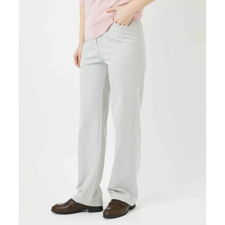 ウエストベルトはややカーブをつけて腰の丸みに沿うように、ヒップをしっかり包み込みソフトなフィット感と安定性を備え、すらりと見せるストレートシルエット。素材にもこだわりシーズンレスで着用でき、伸縮性もあり快適な穿き心地です。オールシーズン使える素材感で、合わせるアイテムにも困らない万能パンツです。