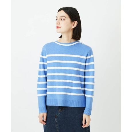 ストレート糸とブークレー糸を切り替えた凹凸が楽しい編地のボーダーニットです。立体的なブークレ糸で編み上げたあたたかみのある一枚で、ハイネックのインナーやシャツを合わせて重ね着を楽しんでいただけるボートネックデザインです。オーバーサイズ過ぎず、体のラインを拾わないサイズ感となっています。ふわふわとした肌触りが魅力的です。