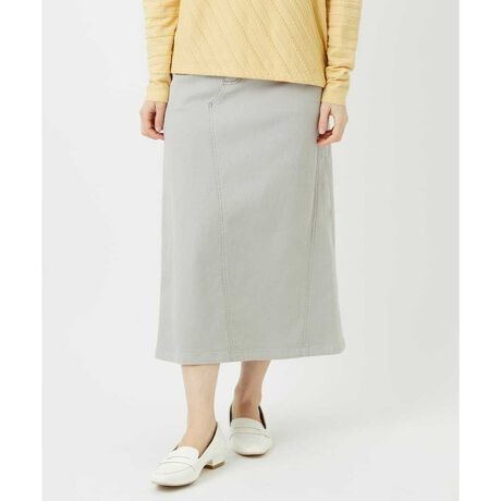 セミタイトのスッキリとしたシルエットのデニムスカートです。サイドに三角マチを挟んだような縦長の切り替えを入れて、体のラインをすっきりと見せる効果をプラスしました。後ろの中心にベンツを入れることで足さばきが良く、動きやすいところも高ポイントです。ウエストはゴム仕様でストレスフリーな着心地です。フロントの斜めに施されたファスナーデザインがほどよい遊び心をプラスしています。定番のインディゴブルーに、今年は新色のライトグレーを追加しました。