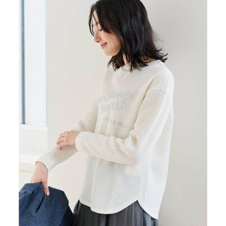 ラメ感のあるロゴ刺繍がポイントで、カジュアルすぎない大人の雰囲気漂うカットソー