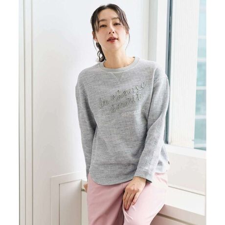 ラメ感のあるロゴ刺繍がポイントで、カジュアルすぎない大人の雰囲気漂うカットソー
