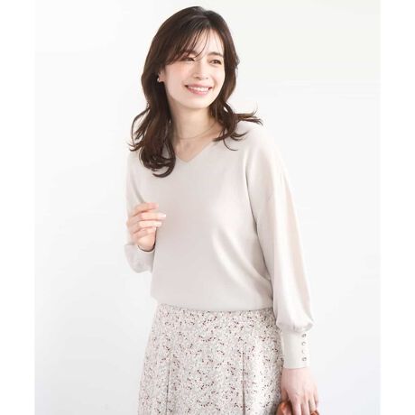 定番のVネックニットは程よいネックの開き具合がレディライクに。すっきり見えながらもボディラインを拾わないサイズ感とシルエットが自慢のニットです。