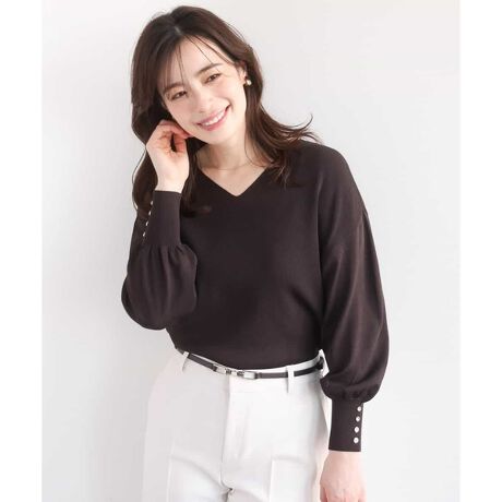定番のVネックニットは程よいネックの開き具合がレディライクに。すっきり見えながらもボディラインを拾わないサイズ感とシルエットが自慢のニットです。