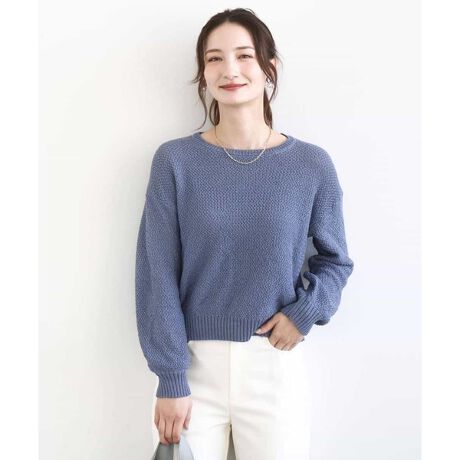 きれいめな目面のニットはコットン混でさらりとした着心地。程よい肉感もありシーズンレスで着こなしやすい素材感です。