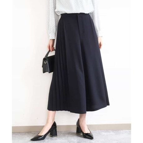 両サイドにプリーツを入れることにより、動きに合わせて揺れるシルエットが華やかな女性らしいパンツ。後ろウエストはゴムを使用し、ラクな履き心地に。ゆったりとしたフレアシルエットで、ウエスト、ヒップ、もも、ふくらはぎ。と体型カバーも◎