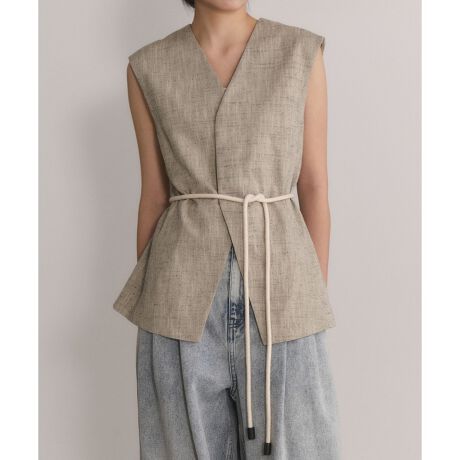 フロントが比翼仕立てになったジレトップス。