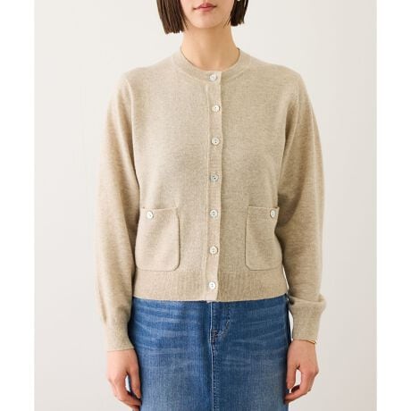 カーディガンを首元や肩に掛けたレイヤードスタイルで、今季らしい抜け感のある着こなしに。