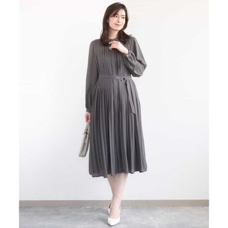 身体全体に入ったプリーツが動きに合わせて表情を変えるワンピース。比翼仕立てできれいめデザインに落とし込んでいます。取り外し可能なDカンベルト付きでベルトをするとすっきりとしたシルエットに。