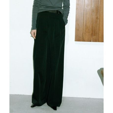 ベルト部分は中肉のサテン生地を使用し、ドレスパンツのようなきれいめな雰囲気とこなれたカジュアル感をMIX。