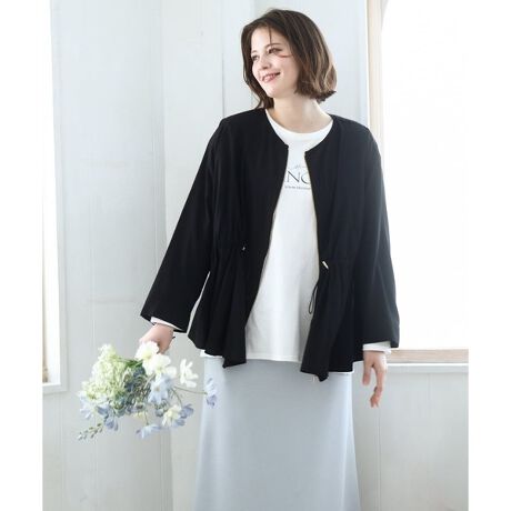 シンプルなノーカラーデザインに、ウエストドロストギャザーを施したトレンド感のあるブルゾンです。