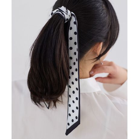 首元に軽く巻いてきれいめスタイルのポイントにしたり、バッグのハンドルに結んでアクセ感覚でプラスするのもおすすめ。ポニーテールやまとめ髪に取り入れて、さりげなくフェミニンさを添えるアレンジも楽しめます。