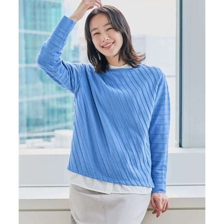 ・小さなケーブル風のタック編み柄がポイントの大人可愛いニットです。