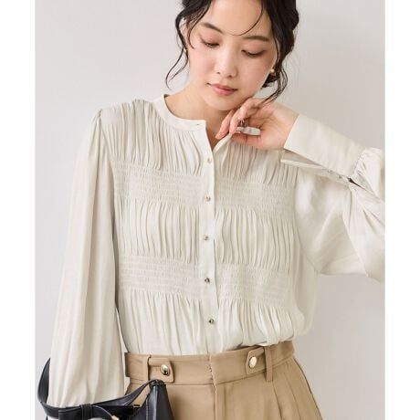 ・上着の邪魔をしないのに、華やかに見えるシャーリングディティールがポイント