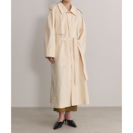 マニッシュなトレンチディティールを取り入れ、袖のカーブしたフォルムやたっぷりとした生地の分量感など、女性らしさも大切にしたスプリングコート。