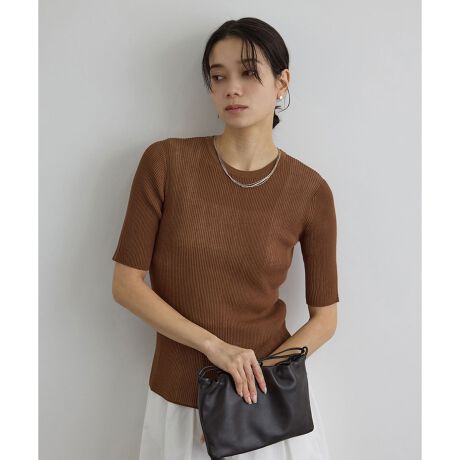 程よくフィットしながらも締め付け感のない、シアーリブニットのハーフスリーブプルオーバーです。