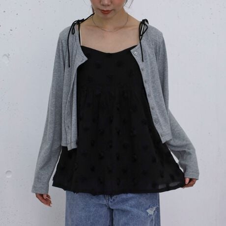 ・華奢な肩紐はリボン結び仕様で、さりげない可愛さをプラス
