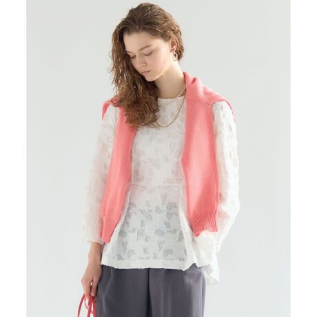 透け感のある軽やかな生地に、羽のような繊細なフリンジと、立体的なボタニカルモチーフを織り込んだカットジャガード素材を使用しています。見る角度によって表情を変える独特の凹凸感が魅力で、着こなしに華やかな奥行きを与えます。 また、シワになりにくい加工が施されており、日中も美しいシルエットをキープ。ご自宅で手軽にお手入れいただけるイージーケア性も魅力です。軽やかな着心地で、春先の気分を盛り上げる一着となることでしょう。