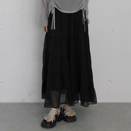 ■ふんわり揺れて映える、シアー楊柳ボリュームティアードスカート■