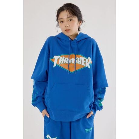 ■ポイントTHRASHER × RODEO CROWNS EXCLUSIVE ITEM。一枚でレイヤード風のスタイルが叶うパーカーです。程よいルーズシルエットでゆったりと着用頂けます。THRASHERロゴがインパクトのある配色で発砲プリントで表現しています。■ディテール袖はフェイクレイヤード仕様。フロントは発砲プリントです。M.Lサイズ展開でユニセックスで着用頂けます。■スタイリング同素材のスウェットパンツ(426IAA01-0351 THRASHERスウェットパンツ)とのセットアップ着用が◎。ワイドパンツとの相性抜群ですがティアードスカートとの合わせもおすすめです。■生地T/C(綿×ポリエステル)の生地にすることで軽くて丈夫な生地の仕上がり。プリント箇所は着用・洗濯によリ白化、剥離する場合があります。プリント箇所は湿った状態で重ねて放置すると色移りの原因となりますので注意してください。■透け感:なし■裏地:なし■伸縮性:ややあり■光沢感:なし[注意事項]※画像の商品はサンプルです。実際の商品と仕様、加工が若干異なる場合があります。※画像の商品は光の照射や角度、お使いのモニター環境により、実物と色味が異なる場合がございます。※着用、お取り扱いの際は、アテンションタグをご確認ください。
