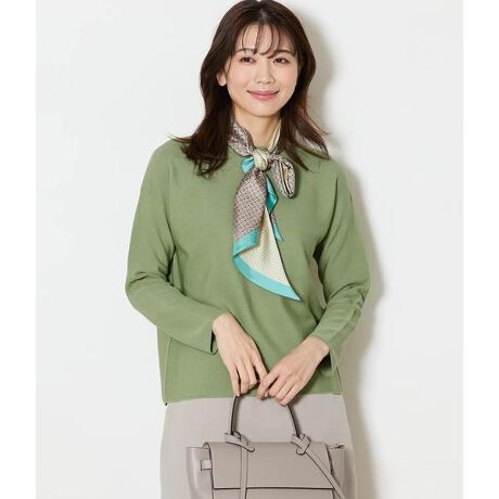 コットンにポリエステルを複合した糸を使用。ふくらみのあるブライトポリエステルを用いることで、上品な微光沢と軽やかさ、柔らかな着心地を実現しました。ホールガーメントならではの縫い目のない仕立てで、ストレスフリーな着用感も魅力です。