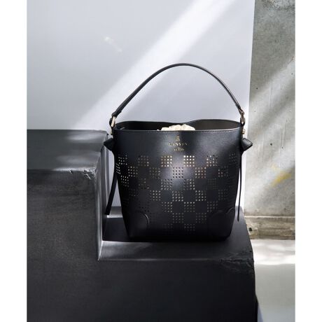 スクエアのパンチング加工で描かれた市松模様が、モダンで涼しげな抜け感を演出するバケットバッグ。
