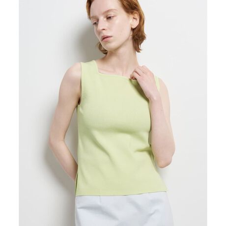 スッキリとしたスクエアネックが目を惹くノースリーブニット。